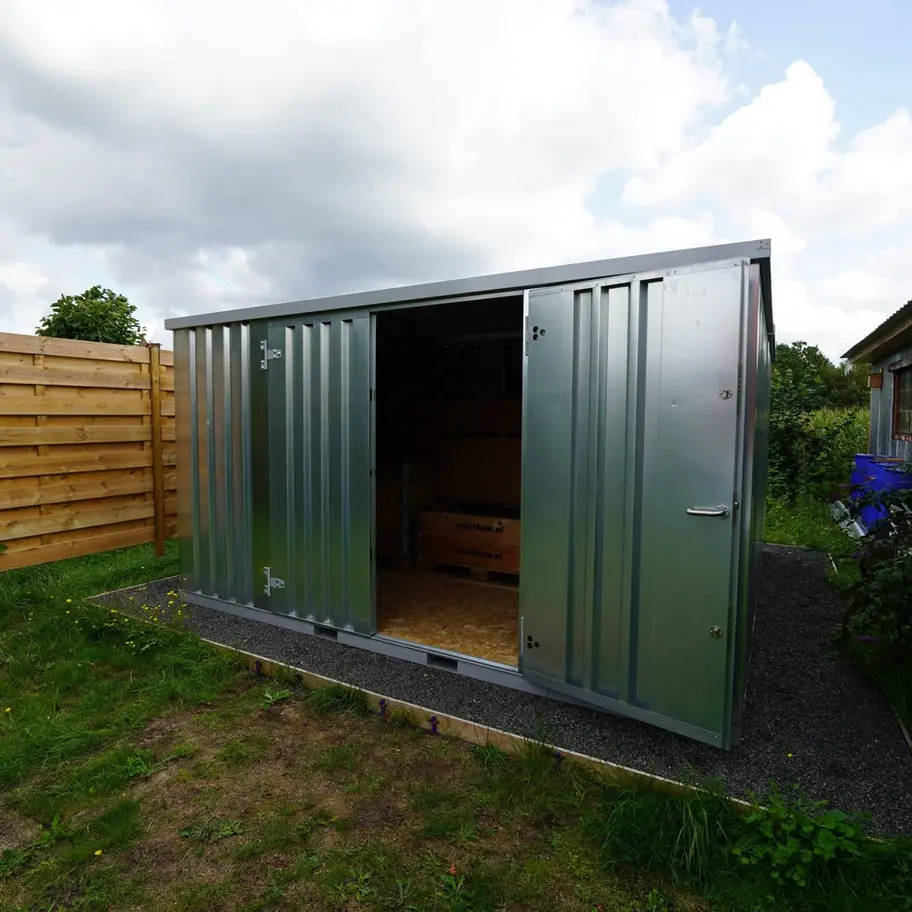 Fabriqué en acier galvanisé, notre conteneur de stockage démontable est résistant à la rouille et aux conditions extérieures. Les tôles de notre conteneur sont plus légères que celles des conteneurs de stockage classiques, mais elles restent solides. La gouttière comprise dans la construction du toit protège le conteneur de stockage des intempéries.